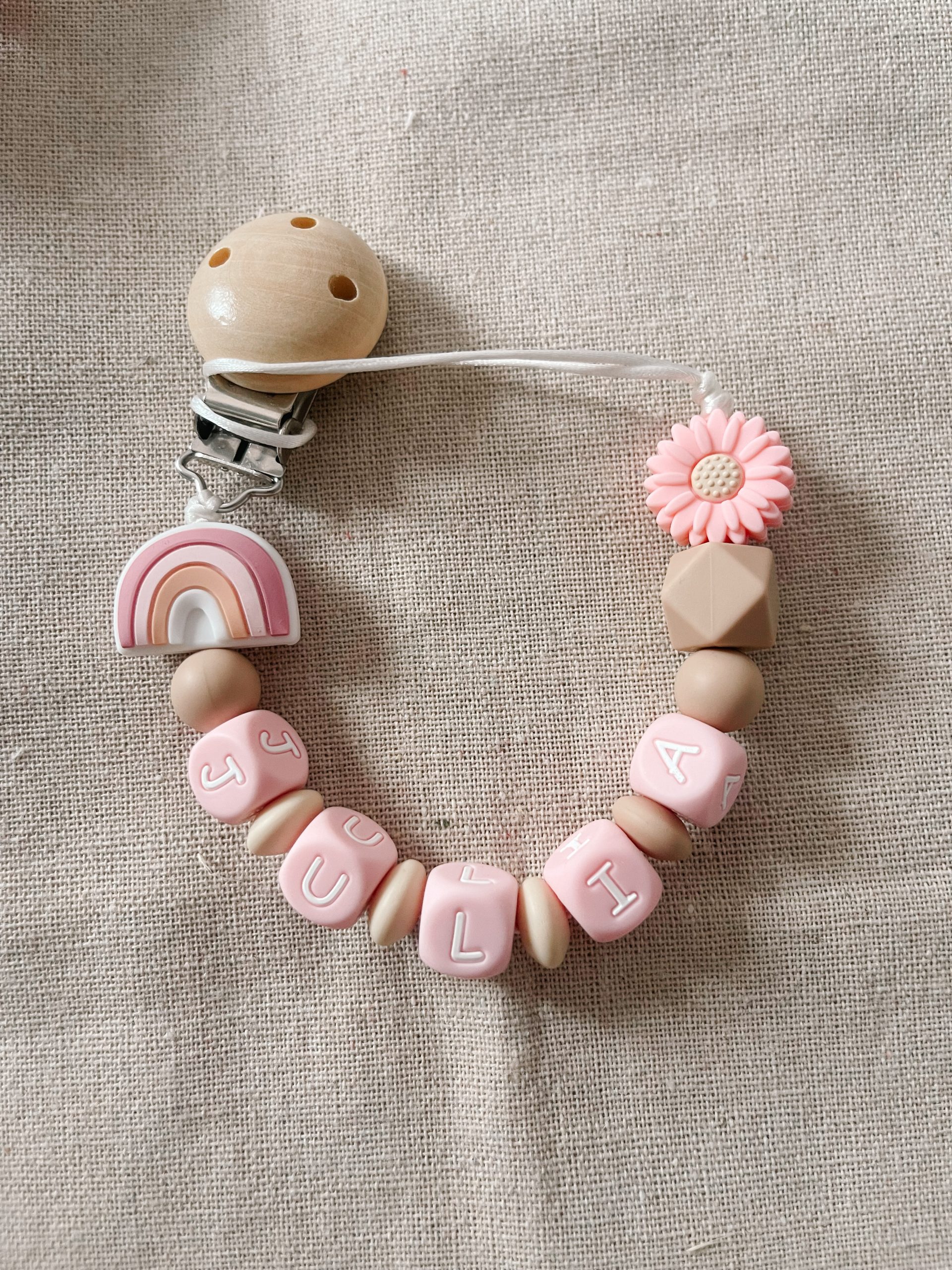 Chupetero de silicona personalizado con el nombre. NO tóxicos para el bebe. Recordar que el chupetero no es un juguete ni un mordedor, no hay que dejar que ele bebe lo chupe o lo muerda.