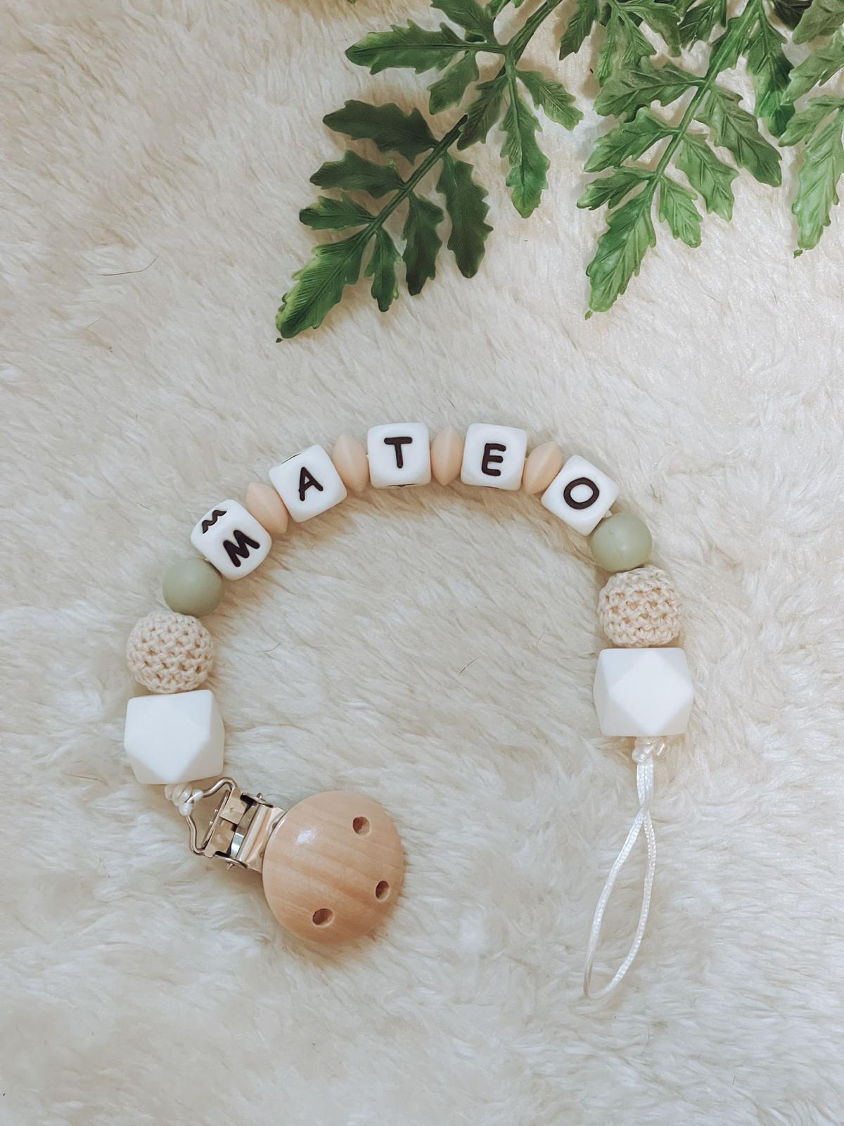 Chupetero de silicona personalizado con el nombre. NO tóxicos para el bebe. Recordar que el chupetero no es un juguete ni un mordedor, no hay que dejar que ele bebe lo chupe o lo muerda.