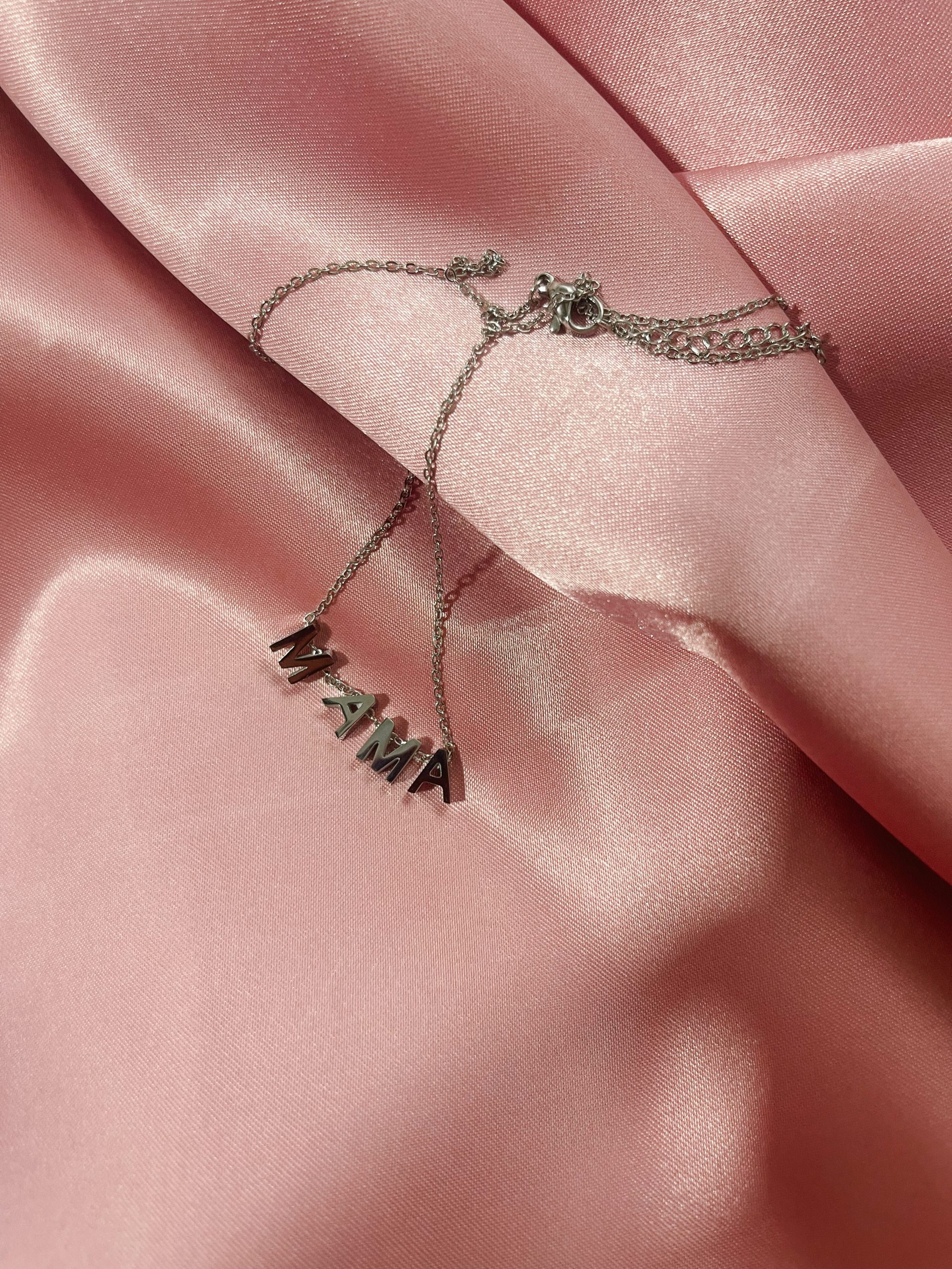 Collar Plateado de Acero Inoxidable con la Palabra «Mamá» 💖✨