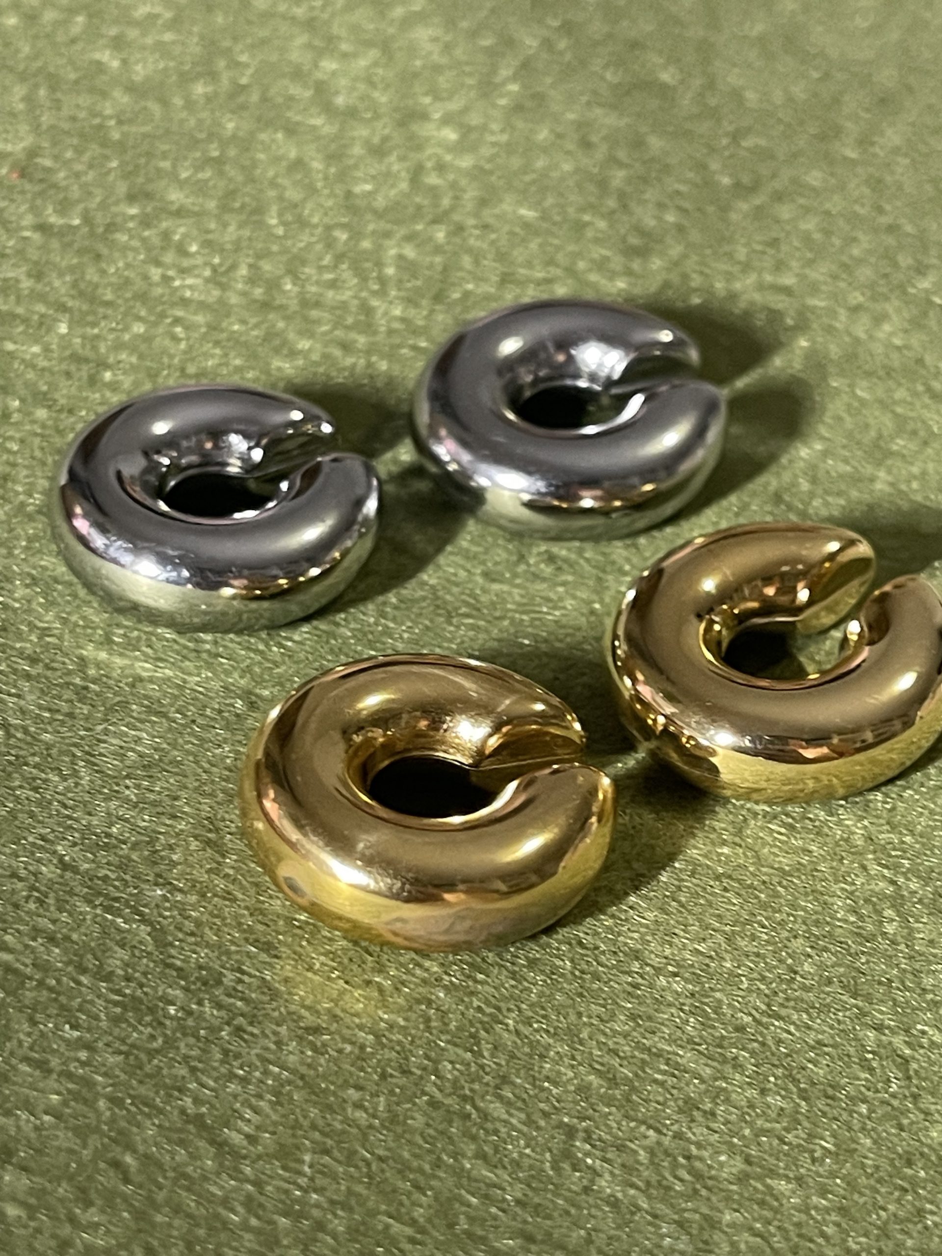 Destaca con estos elegantes ear cuffs XXL de acero inoxidable, disponibles en dorado y plateado.