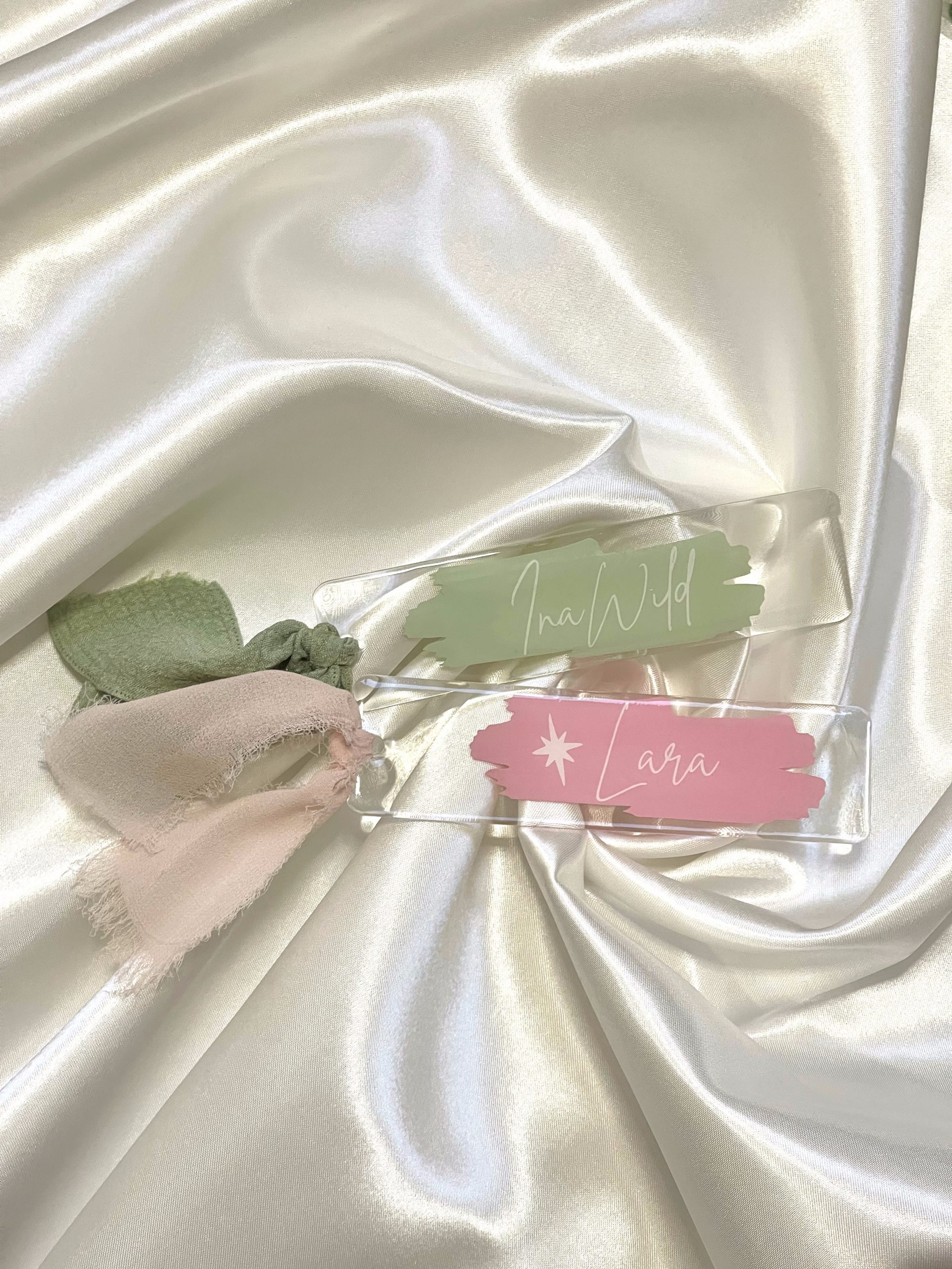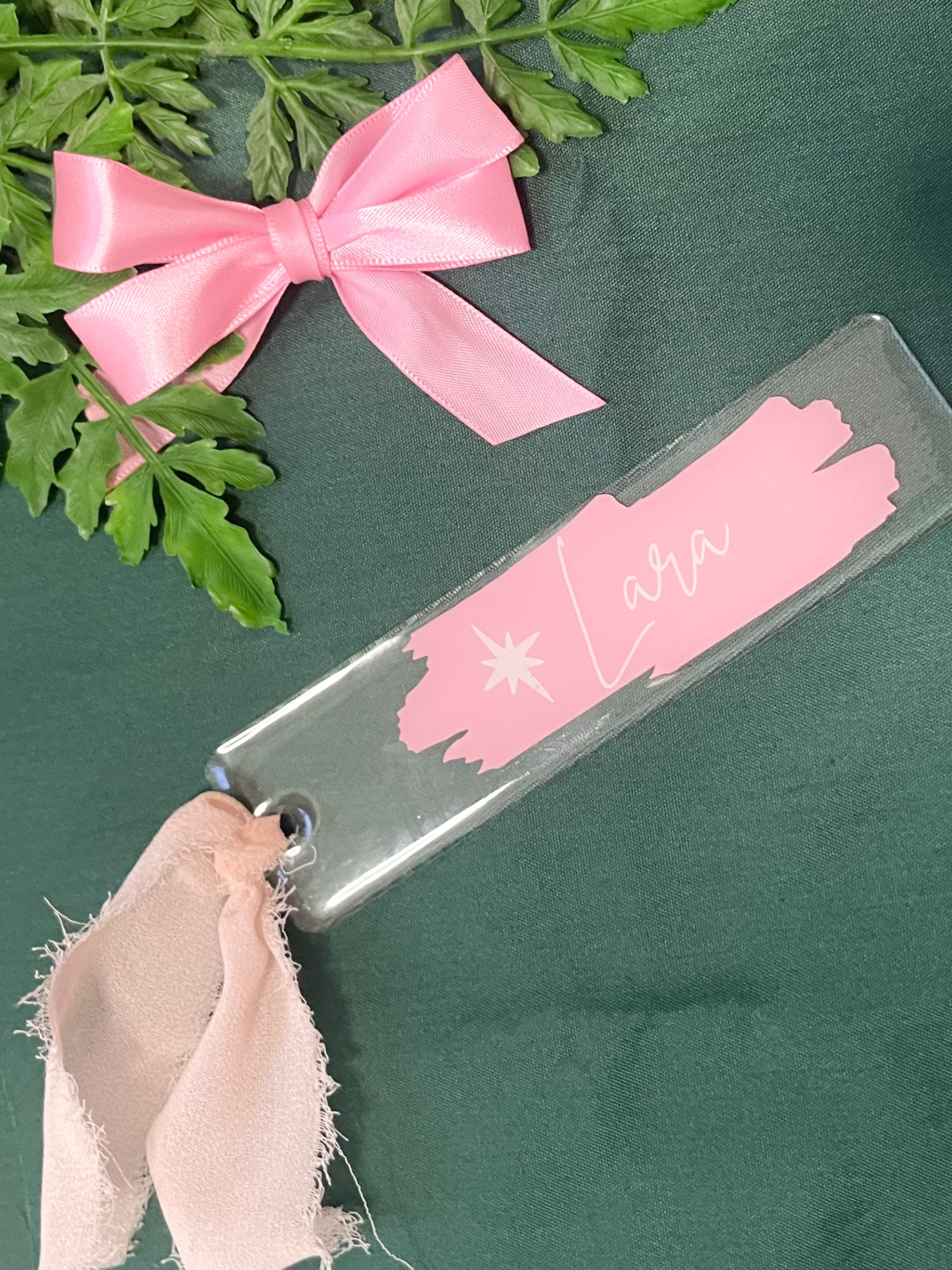 Marcapaginas de acrilico con cinta a conjunto para que tu libro o tu agenda tenga un accesorio personalizado.