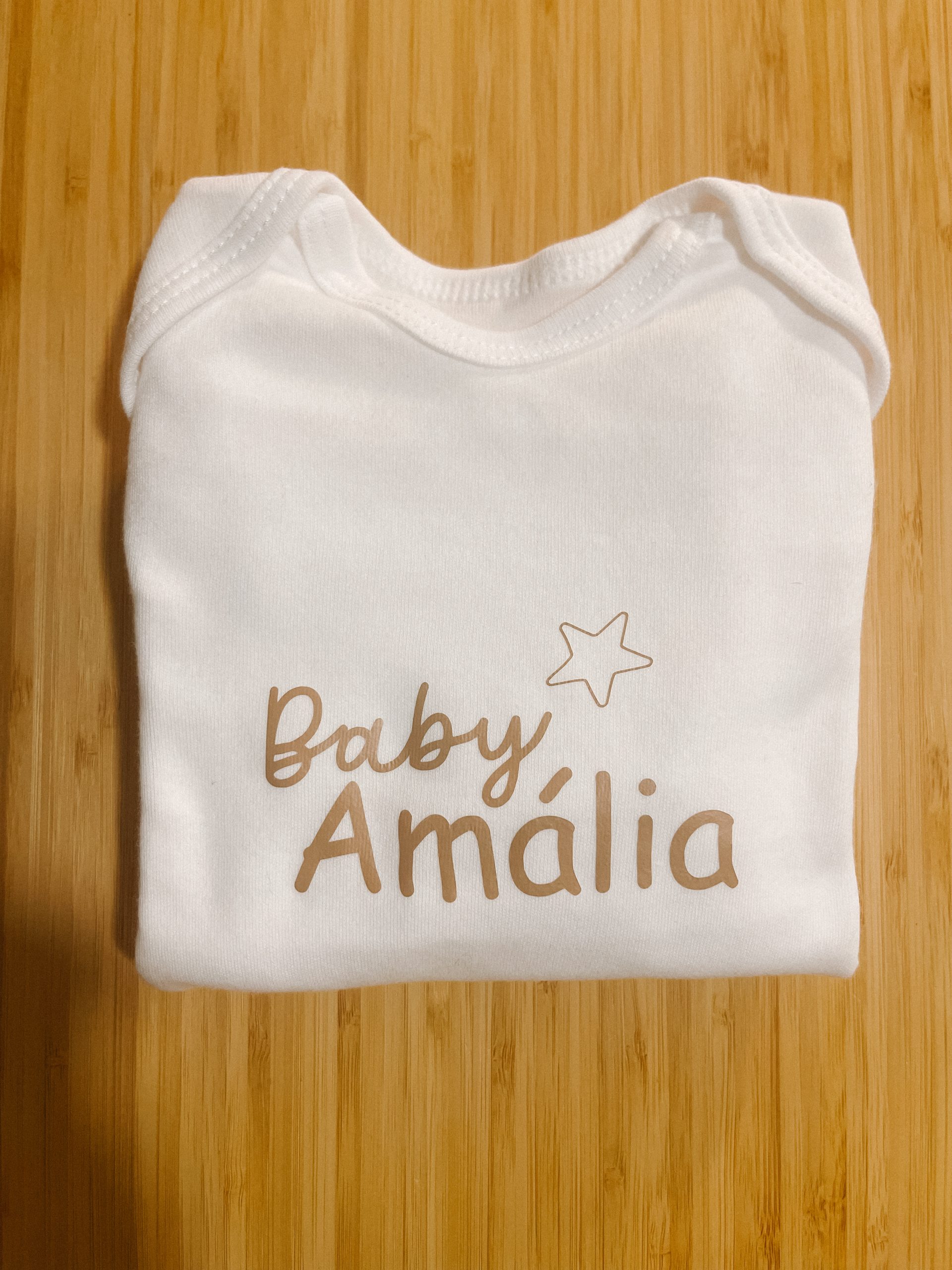 - Body suave y cómodo: Fabricado en algodón 100% de alta calidad, ideal para la delicada piel del bebé, con el nombre estampado para un detalle especial.
