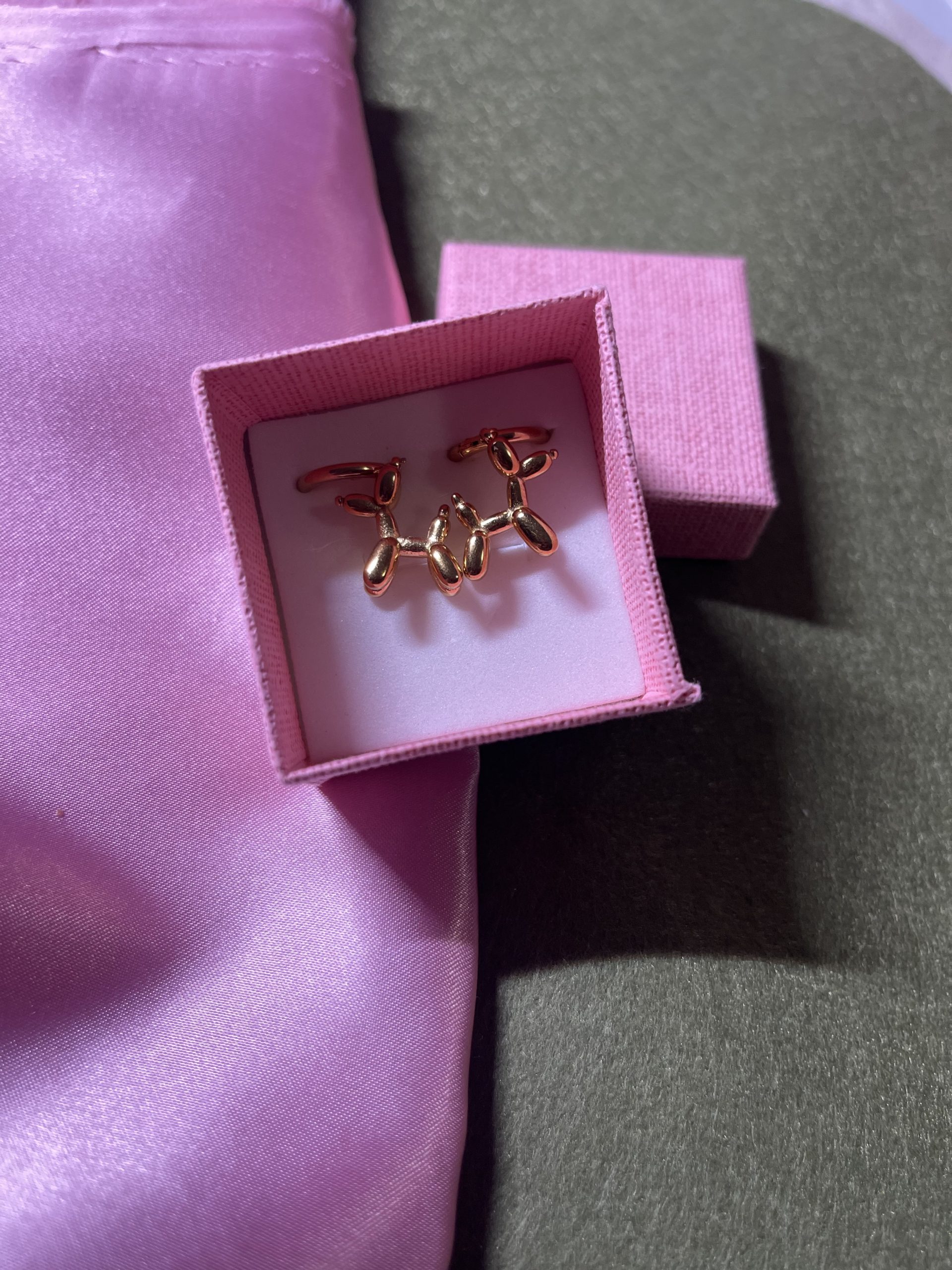 Dale un toque original a tu estilo con estos pendientes dorados de acero inoxidable en forma de perritos globo.